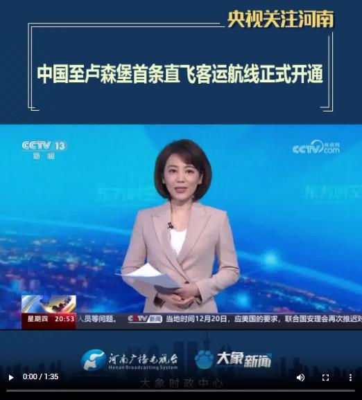 【央視關注河南】中國至盧森堡首條直飛客運航線正式開通