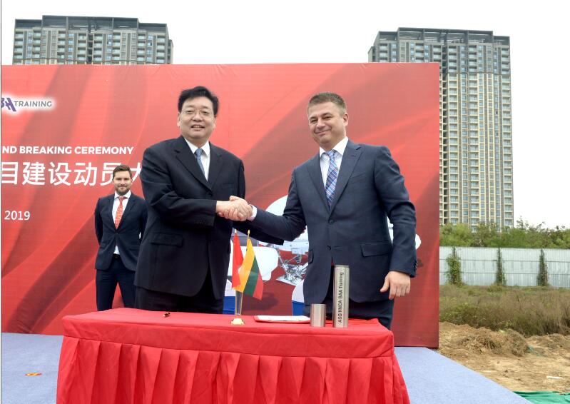 10月25日上午,BAA(中國)航空培訓中心項目建設動員大會在航空港區舉行。隨著第一鍬土填入基坑,中原首家航空培訓中心正式開工建設。該項目填補了河南省航空培訓產業的空白,進一步完善了河南民航產業鏈條。省外事辦、省財政廳、鄭州航空港實驗區管委會相關領導,河南航投黨委書記、董事長張明超,總經理、黨委副書記、副董事長劉建葆;立陶宛阿維亞解決方案集團董事長格迪米納斯,立陶宛阿維亞解決方案集團董事維加烏達斯,立陶宛BAA Training總經理艾格,阿維亞融資租賃(中國)有限公司總經理托馬斯,BAA(中國)航空培訓中心總經理奧維馬斯共同為項目培土奠基。